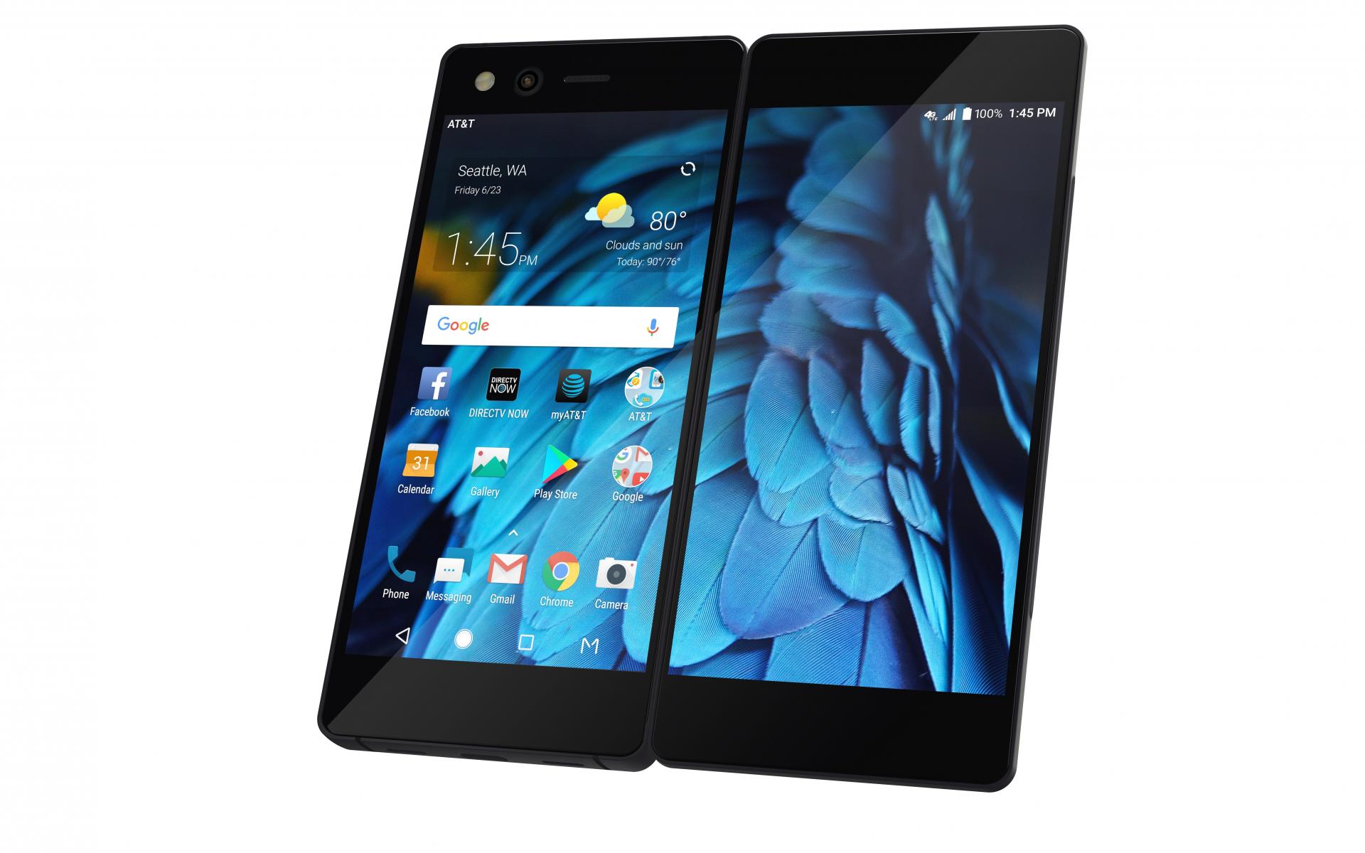 Обои Стильный черный смартфон ZTE Axon M, 2017 на белом фоне