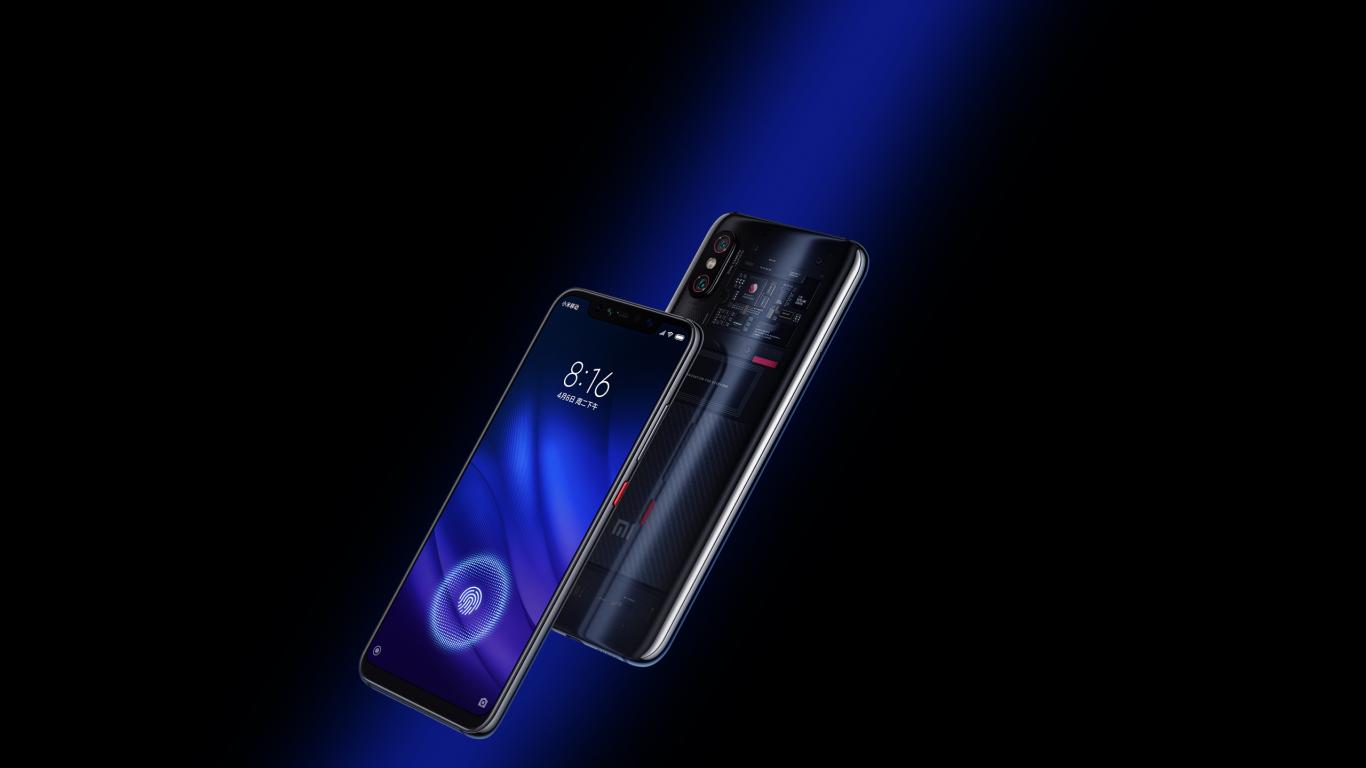 Обои Смартфон Xiaomi Mi 8 на черном фоне