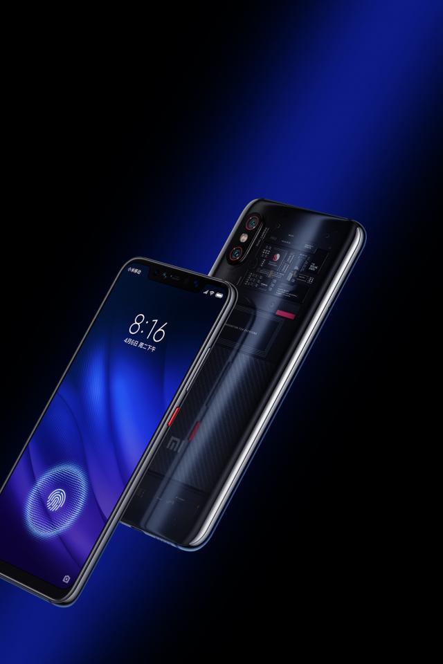 Обои Смартфон Xiaomi Mi 8 на черном фоне