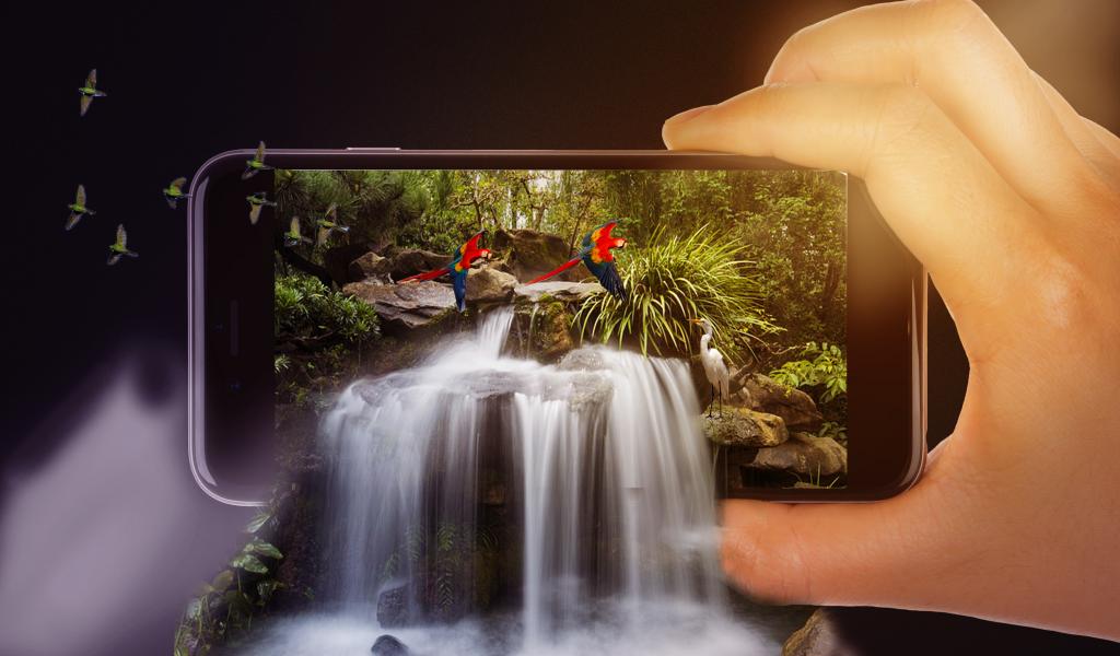Обои Водопад вытекает из смартфона в руке