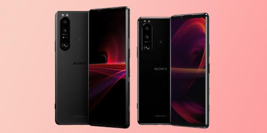 Обои Стильные тонкие смартфоны Sony Xperia 1 на розовом фоне