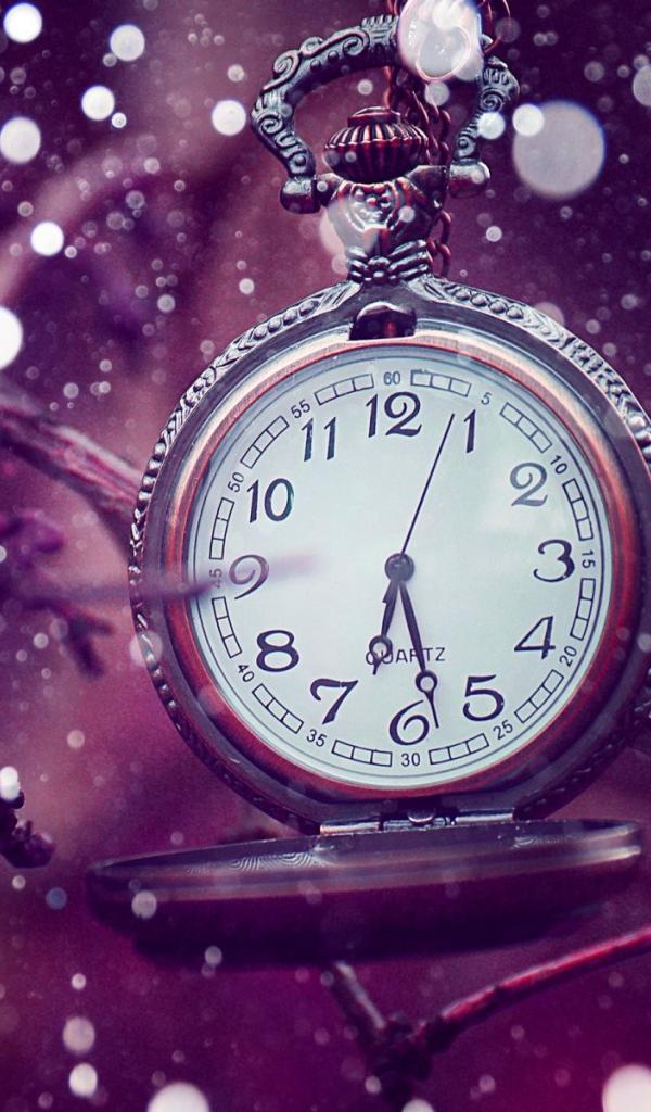 Обои Карманные часы на фиолетовом фоне