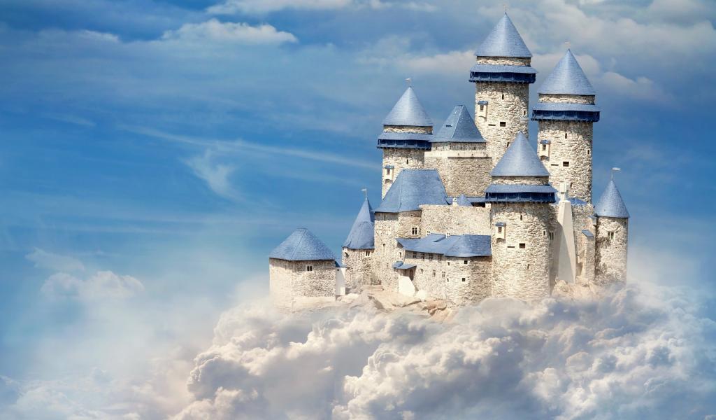 Обои Замок на белых облаках в голубом небе