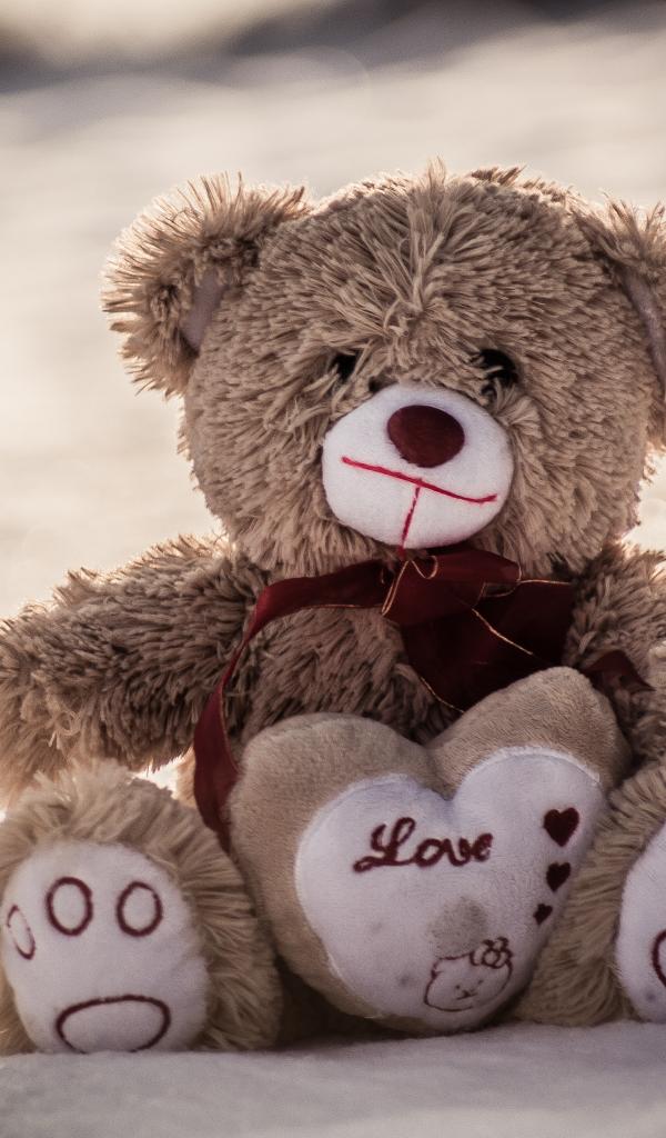 Обои Мягкая игрушка медвежонок с сердцем