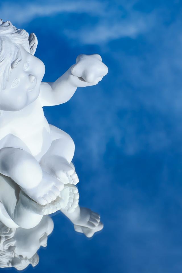 Обои Маленькая статуя купидона отражается в голубой поверхности