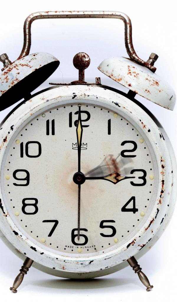 Обои Старый будильник с большим циферблатом на белом фоне