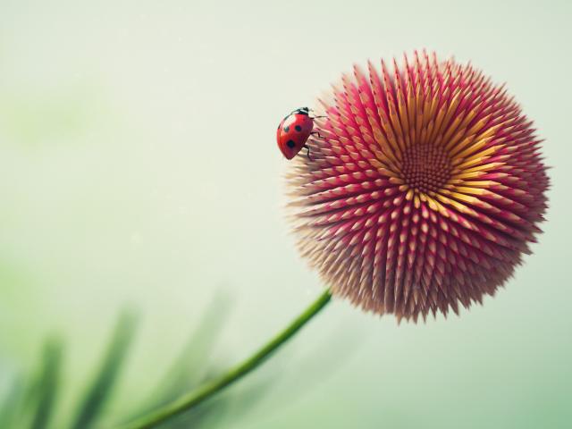 Обои Цветок из карандашей с божьей коровкой