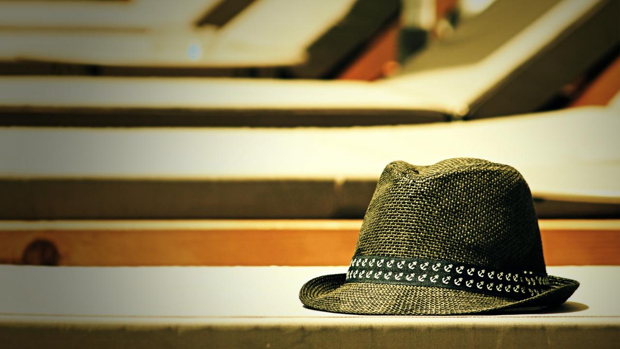 Обои Летняя шляпа лежит на лавке в лучах солнца