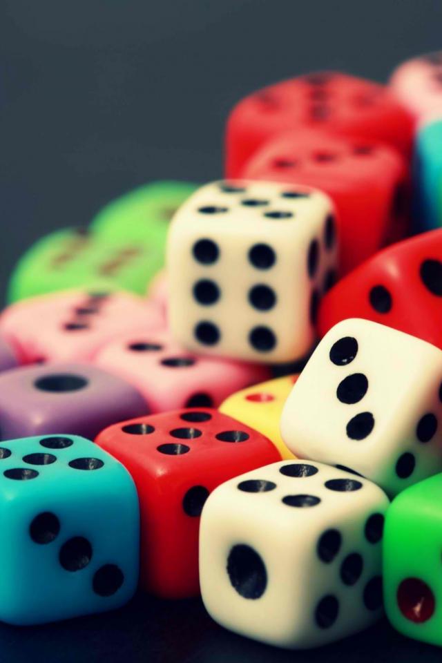 Обои Разноцветные игральные кости на сером столе