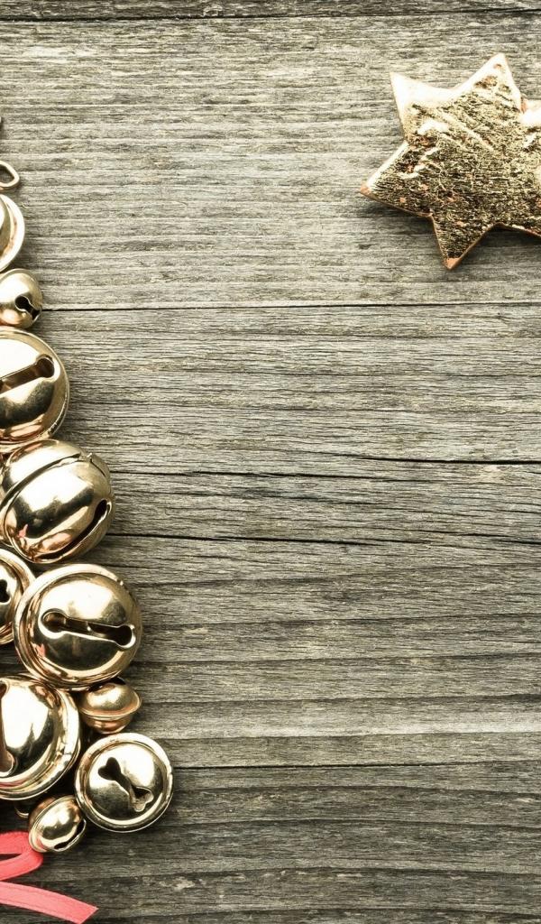 Обои Елка из колокольчиков на деревянном фоне