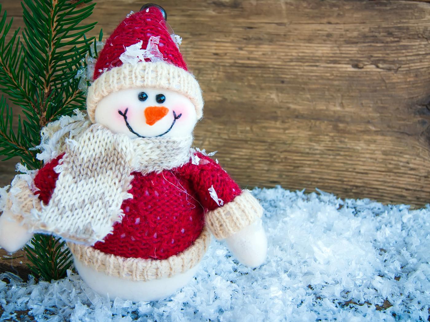 Обои Снеговик на искусственном снегу с еловой веткой