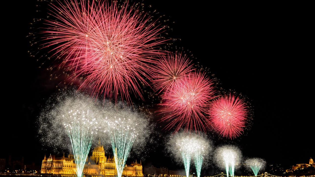 Обои Взрывы яркого салюта над ночным городом