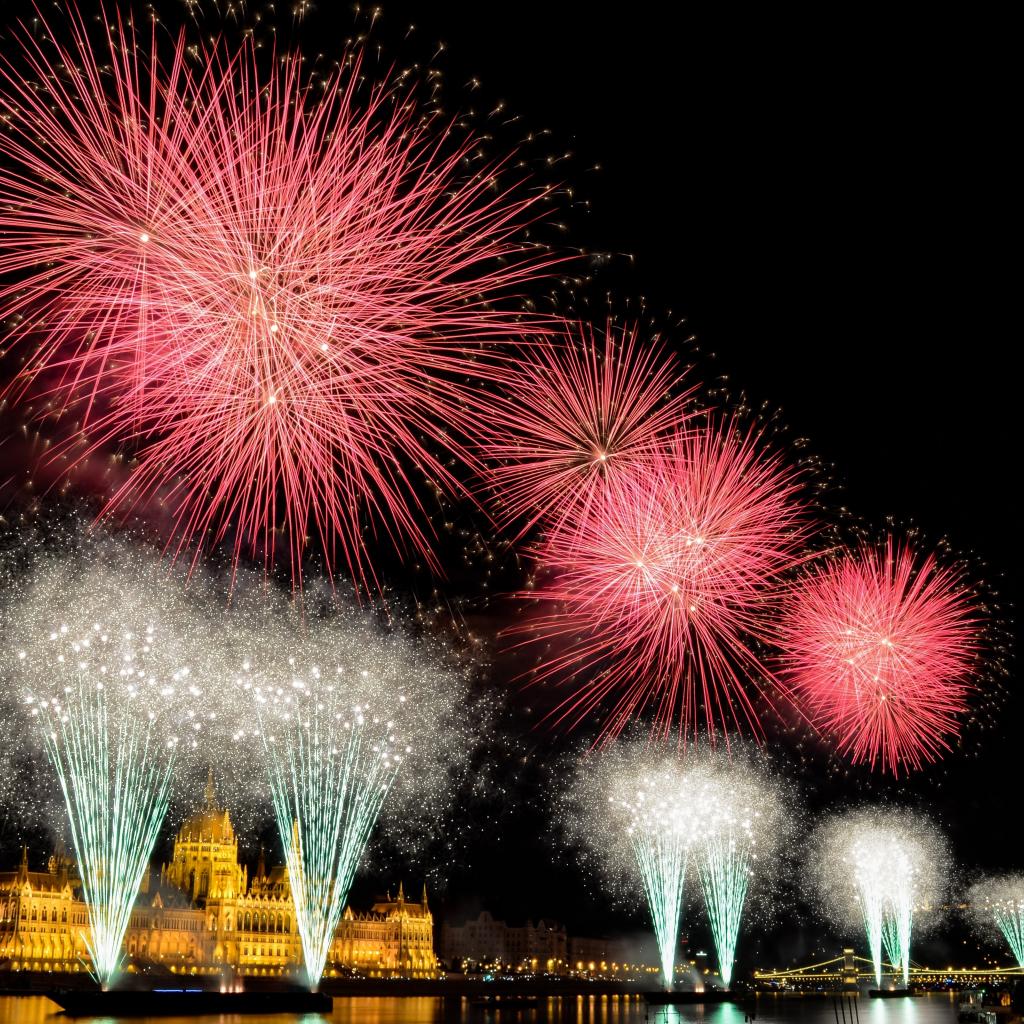 Обои Взрывы яркого салюта над ночным городом