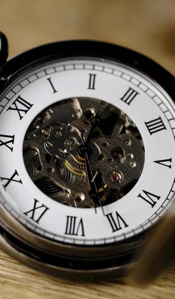Обои Карманные часы на цепочке на деревянном столе