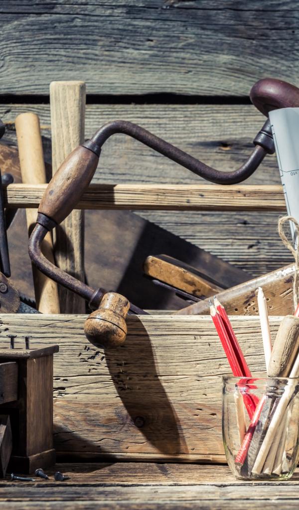 Обои Столярные инструменты в ящике на столе