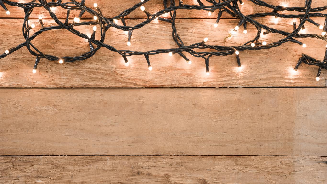 Обои Гирлянда на деревянном фоне