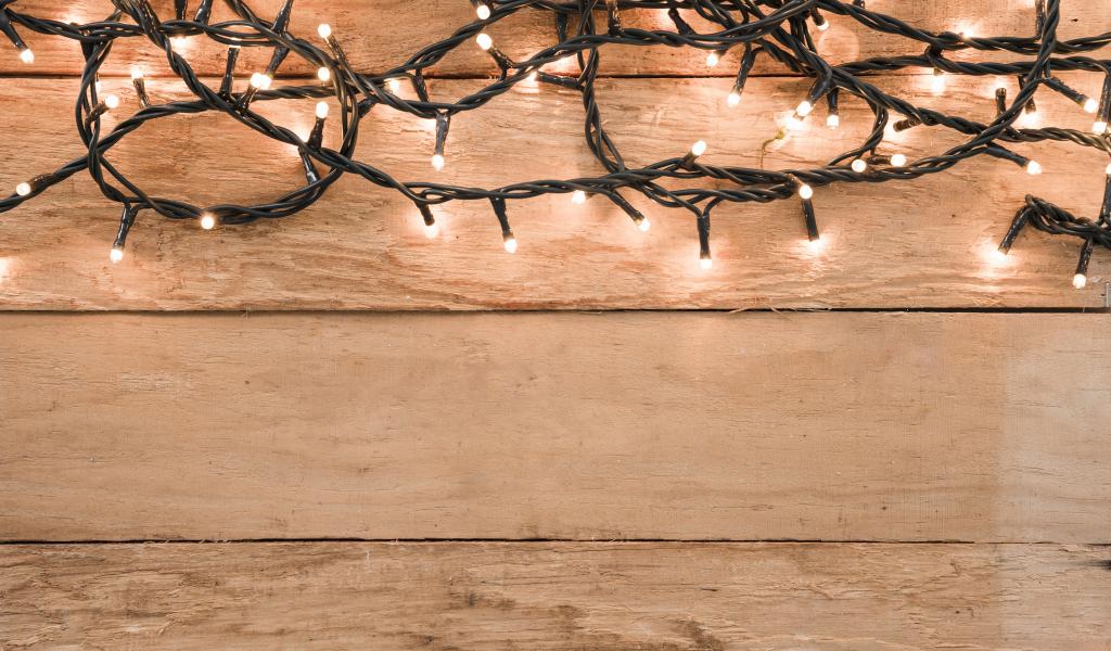 Обои Гирлянда на деревянном фоне