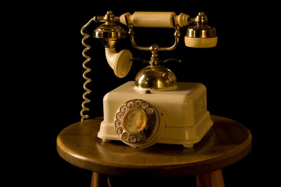 Обои Ретро телефон на тумбочке на черном фоне