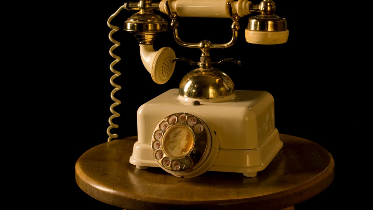 Обои Ретро телефон на тумбочке на черном фоне