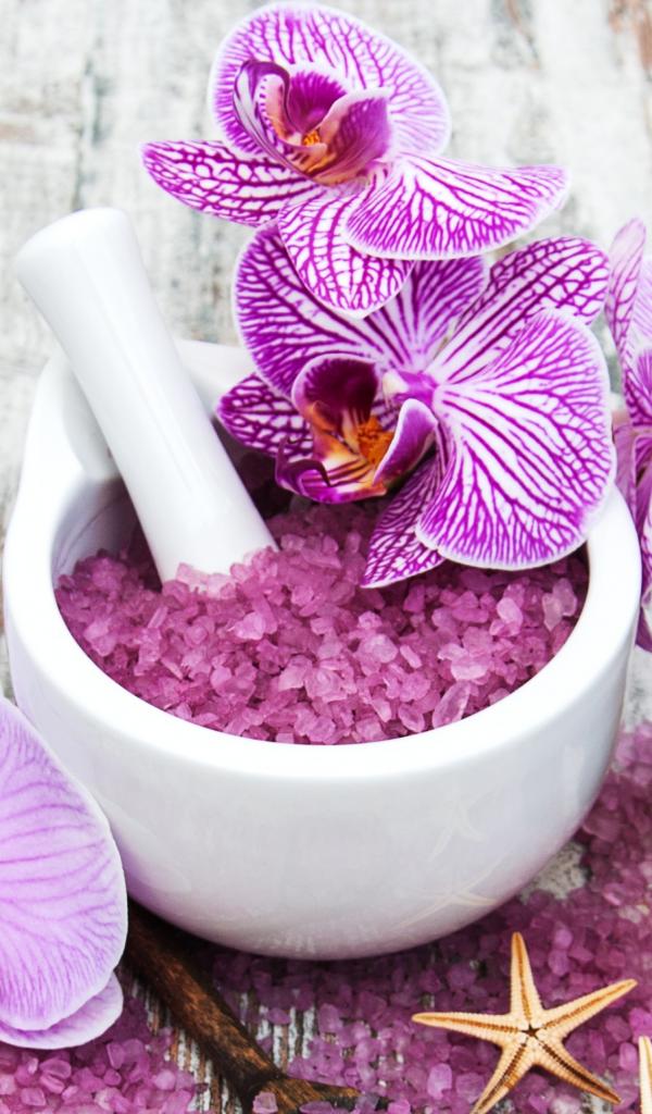 Обои Ароматная соль, цветы орхидеи и ароматическое масло