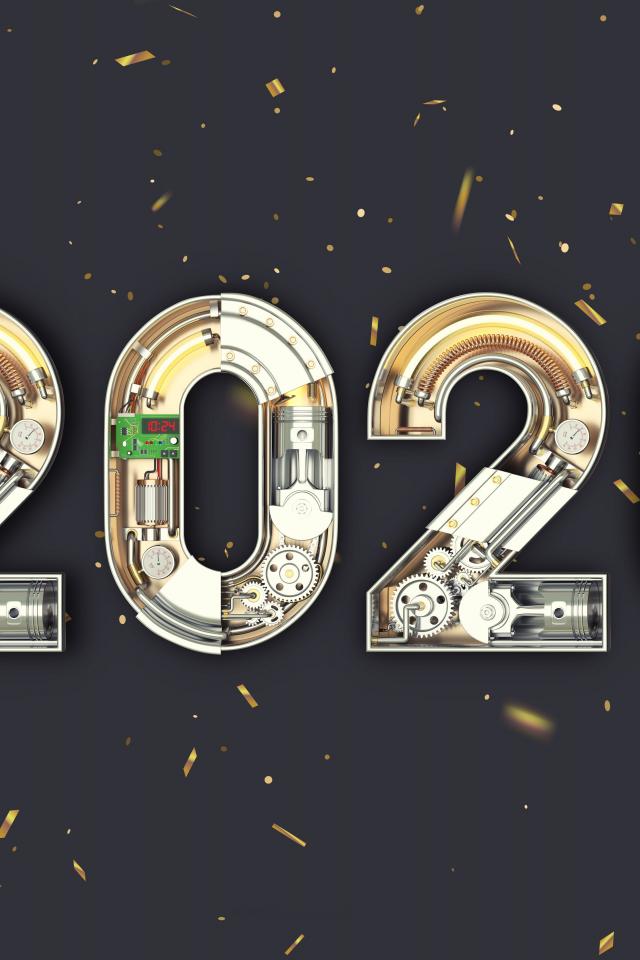 Обои Большие механические цифры 2020 на сером фоне