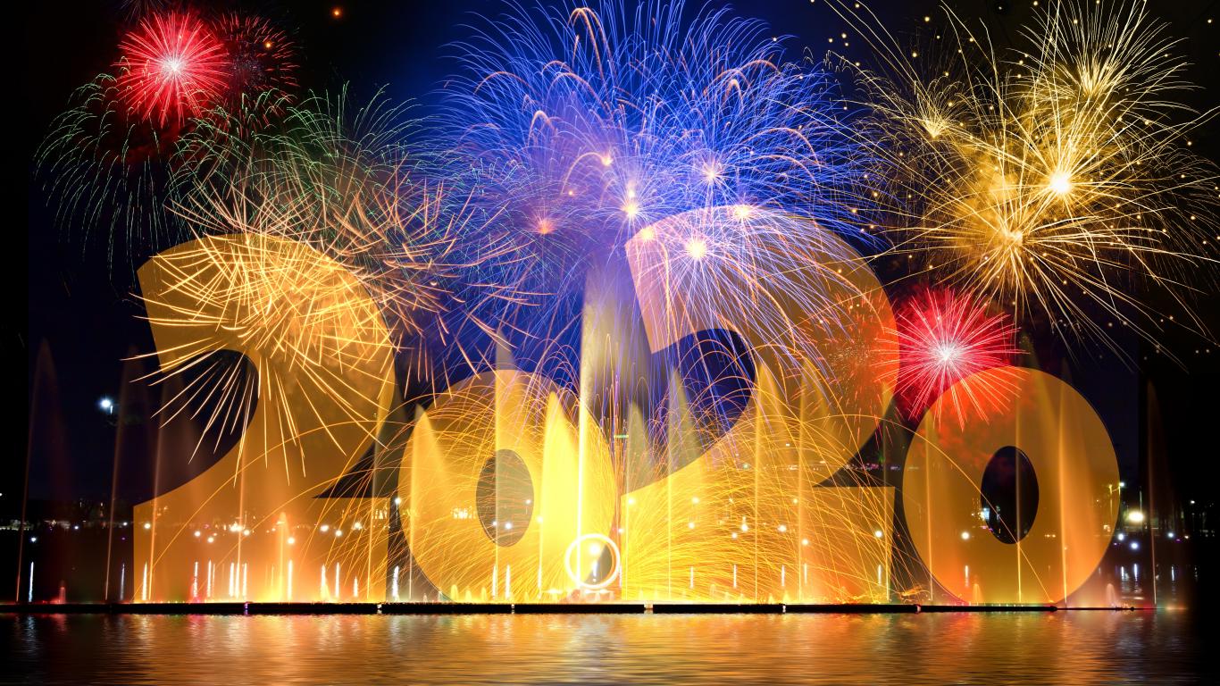 Обои Салют над водой с большими цифрами 2020