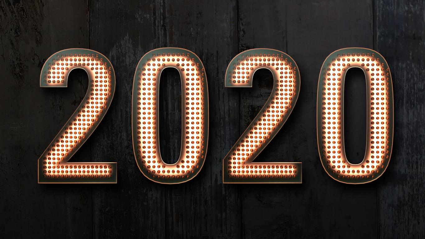 Обои Красивые цифры 2020 на черном фоне