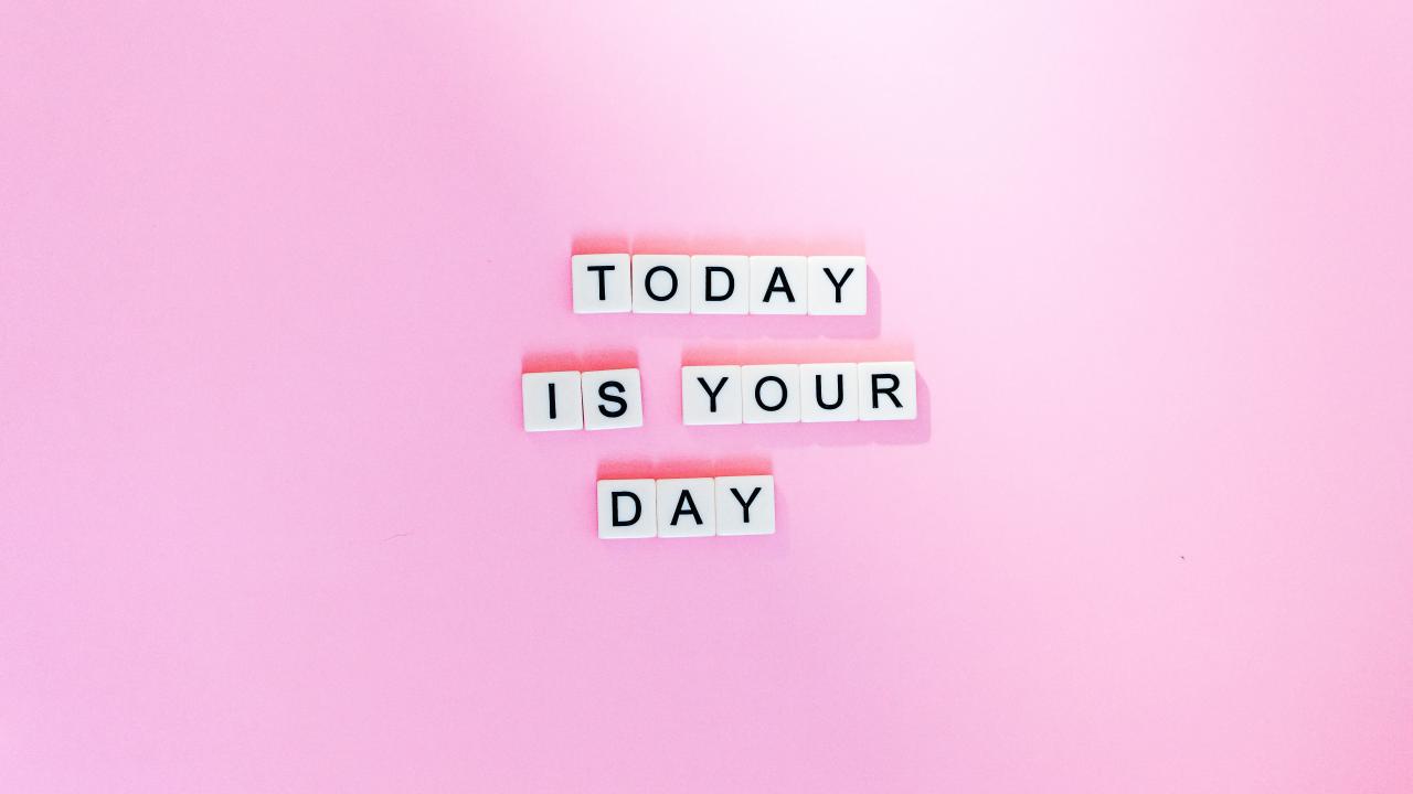 Обои Кубики с надписью Today is your Day на розовом фоне