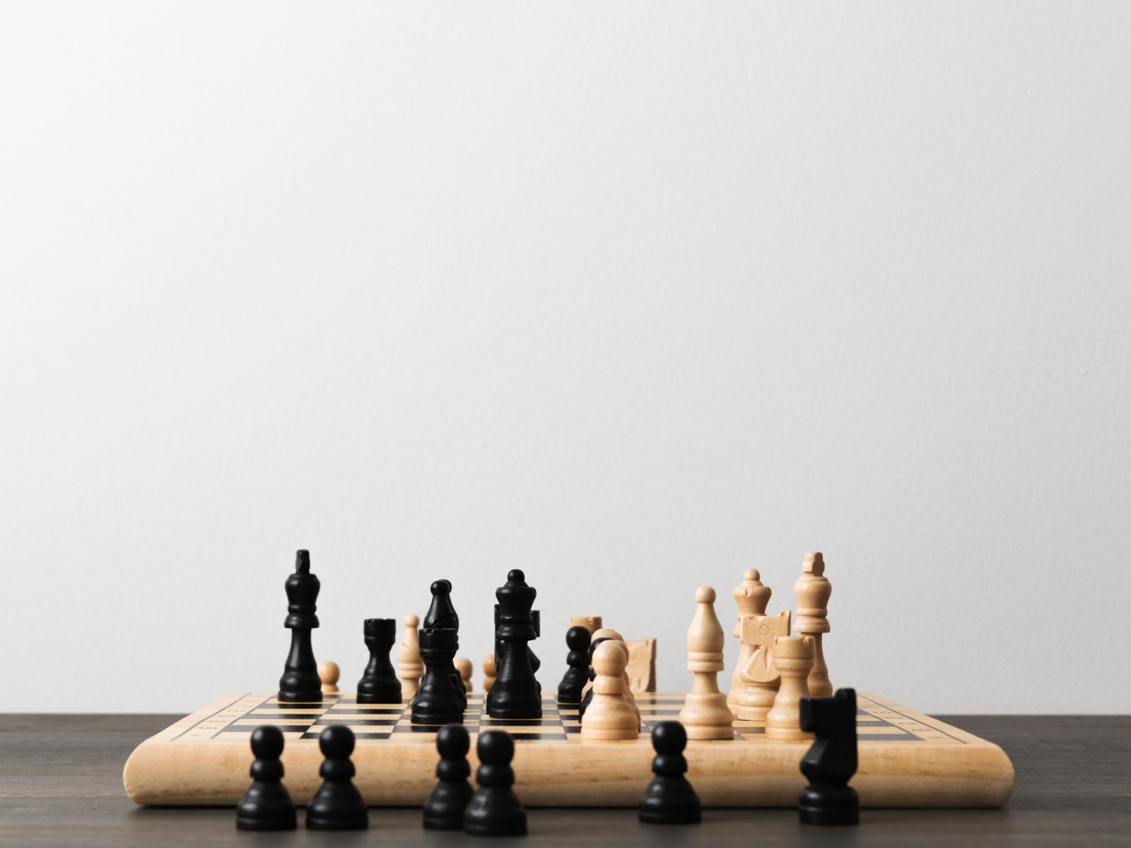 Обои Шахматная доска с фигурами на сером фоне
