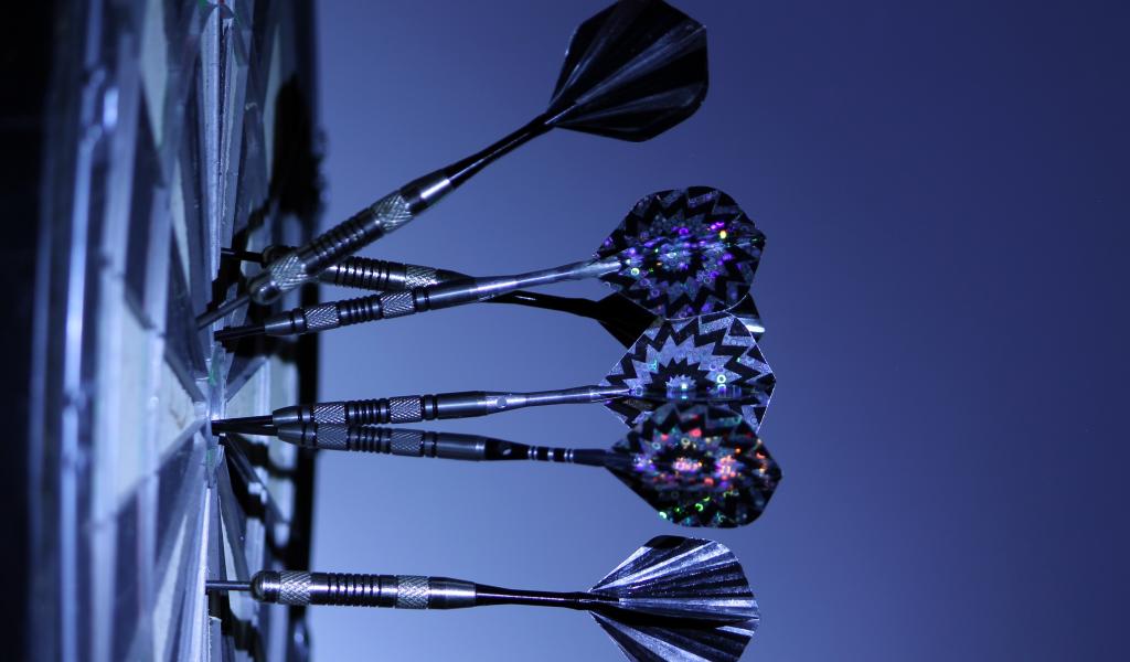 Обои Дротики в доске для дартс на синем фоне