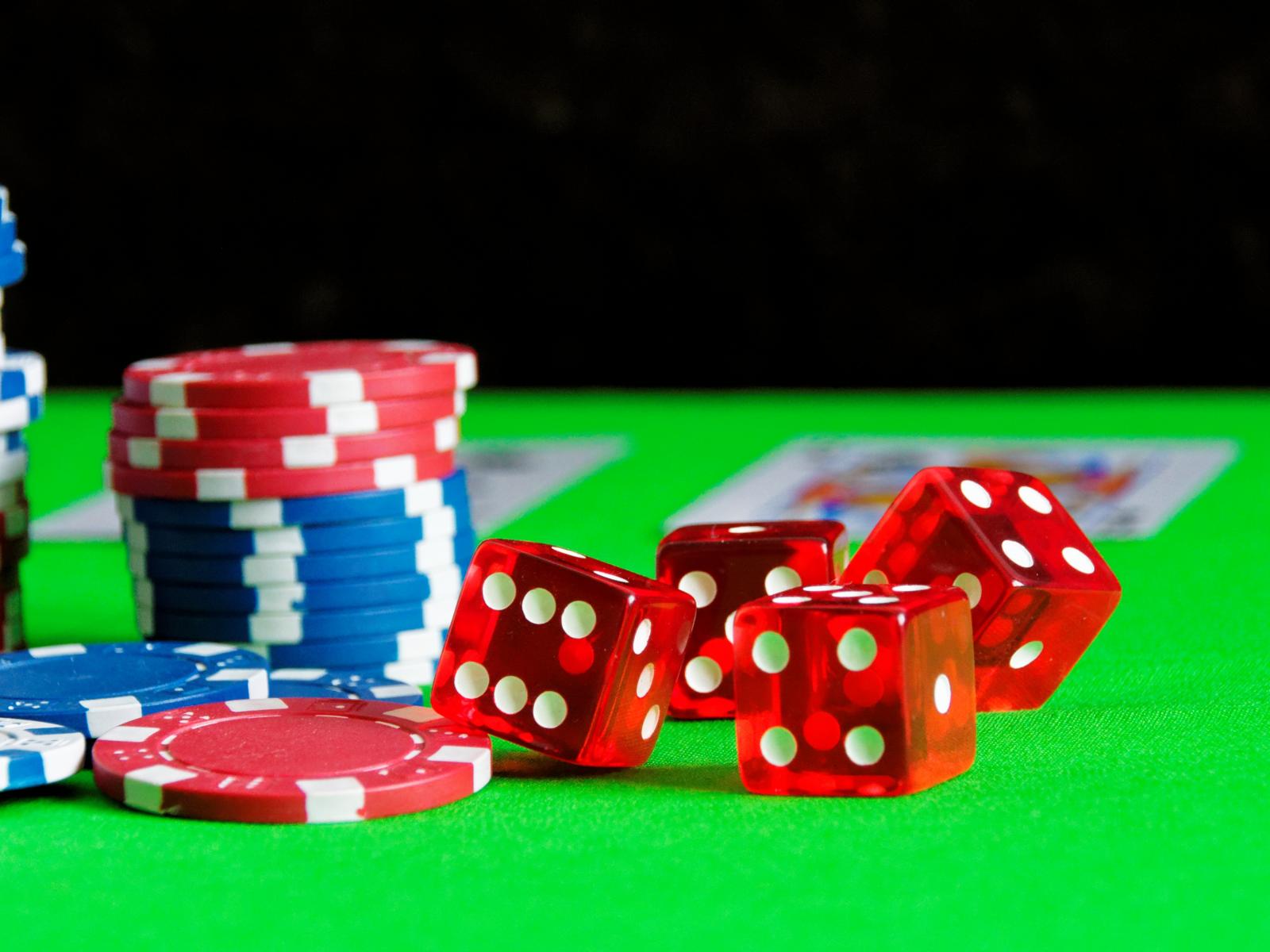 Обои Игральные кости, карты и фишки на столе