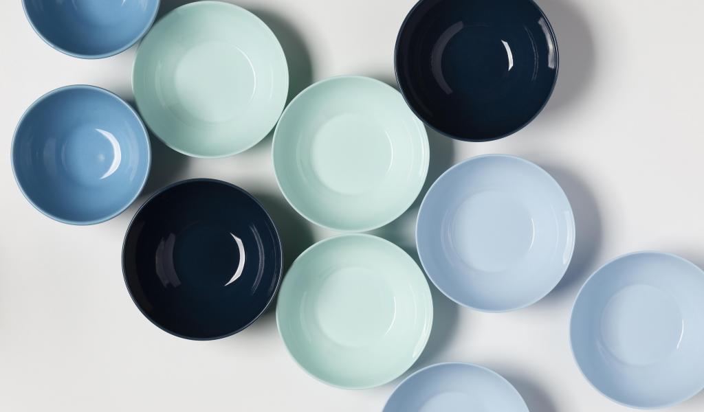 Обои Разноцветные фарфоровые миски на столе