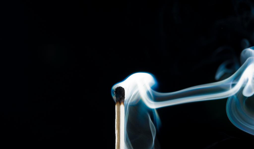 Обои Белый дым от сожженной спички на черном фоне