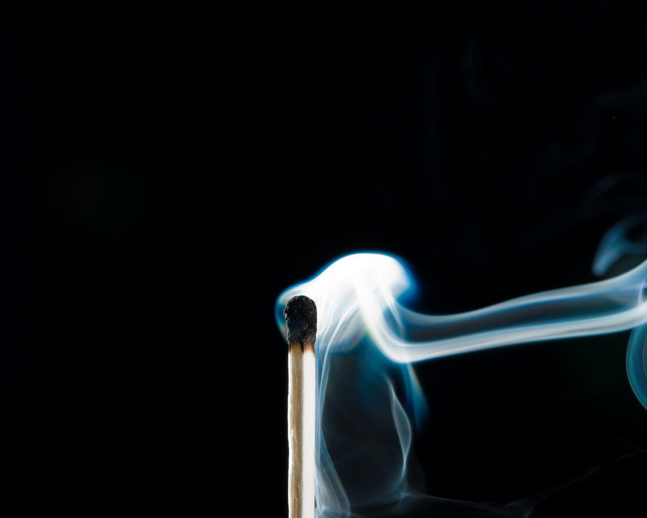 Обои Белый дым от сожженной спички на черном фоне