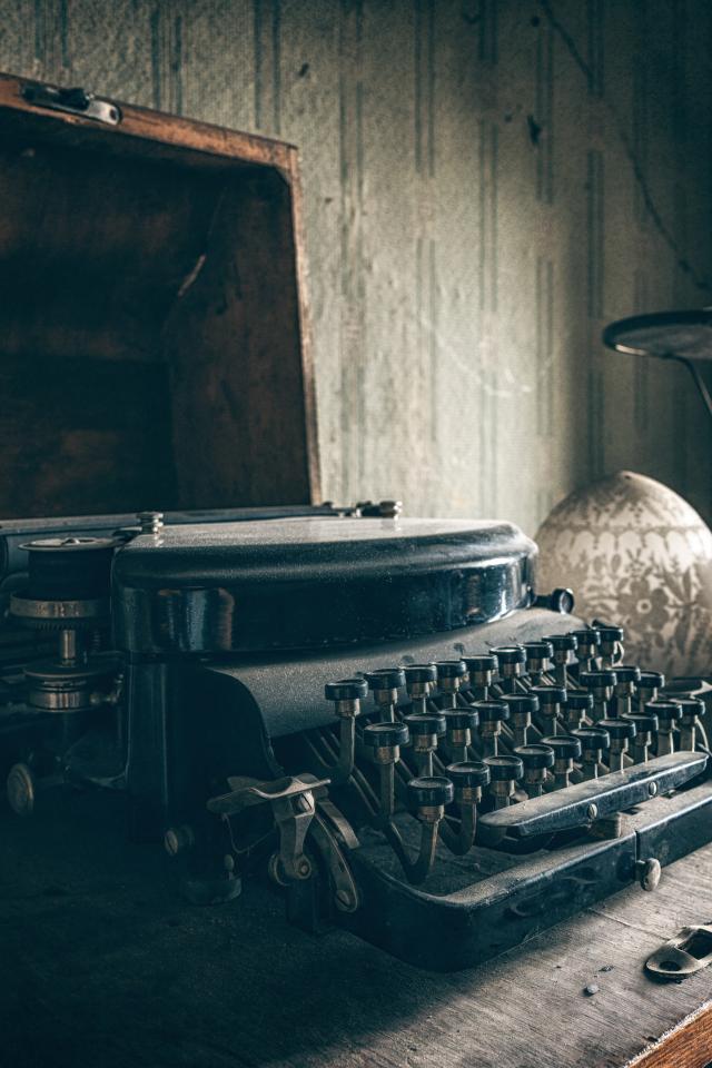 Обои Старая черная печатная машинка на столе