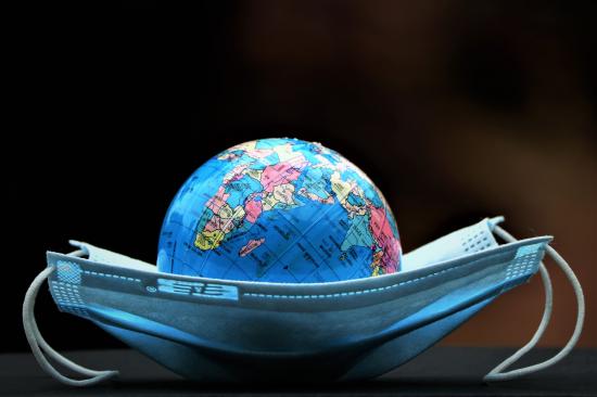 Обои Медицинская маска и глобус на черном фоне