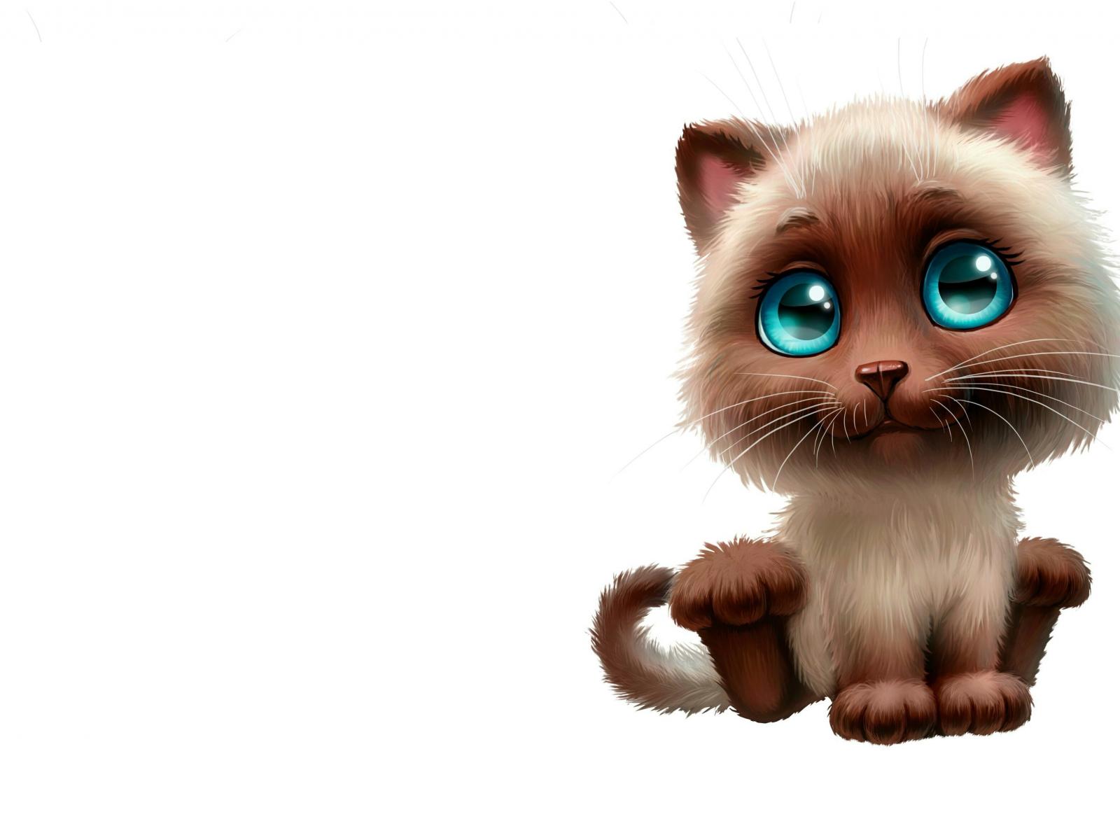 Обои Нарисованный милый котенок с большими глазами на белом фоне