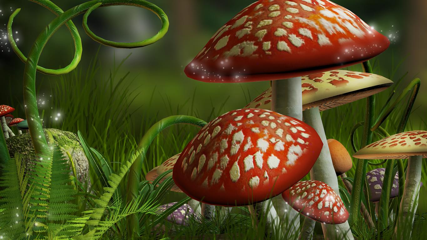 Обои Нарисованные фантастические грибы мухоморы