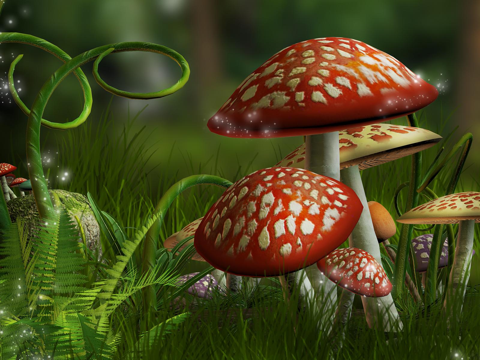 Обои Нарисованные фантастические грибы мухоморы