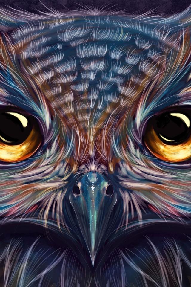 Обои Красивая нарисованная сова с коричневыми глазами