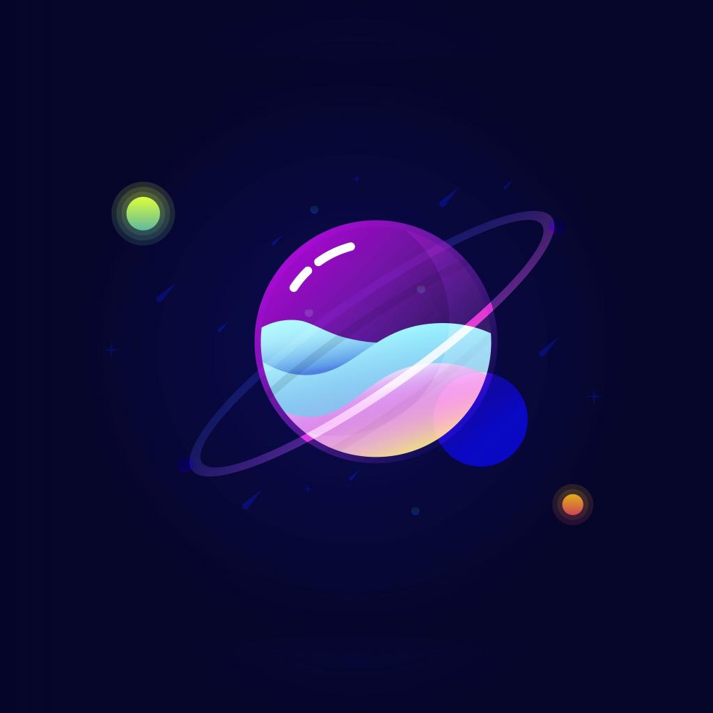 Обои Разноцветная нарисованная планета на синем фоне