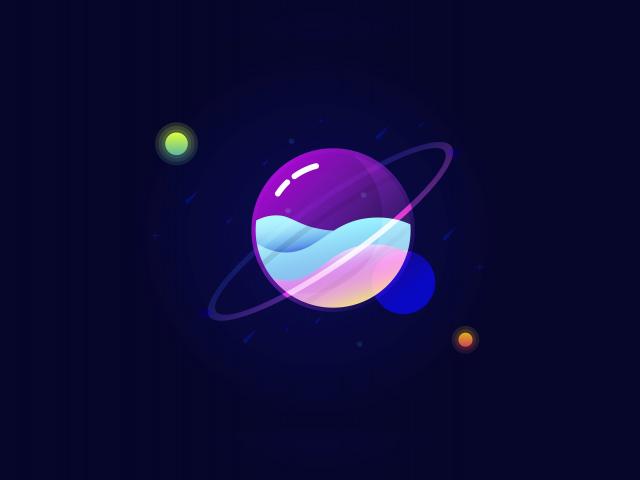 Обои Разноцветная нарисованная планета на синем фоне