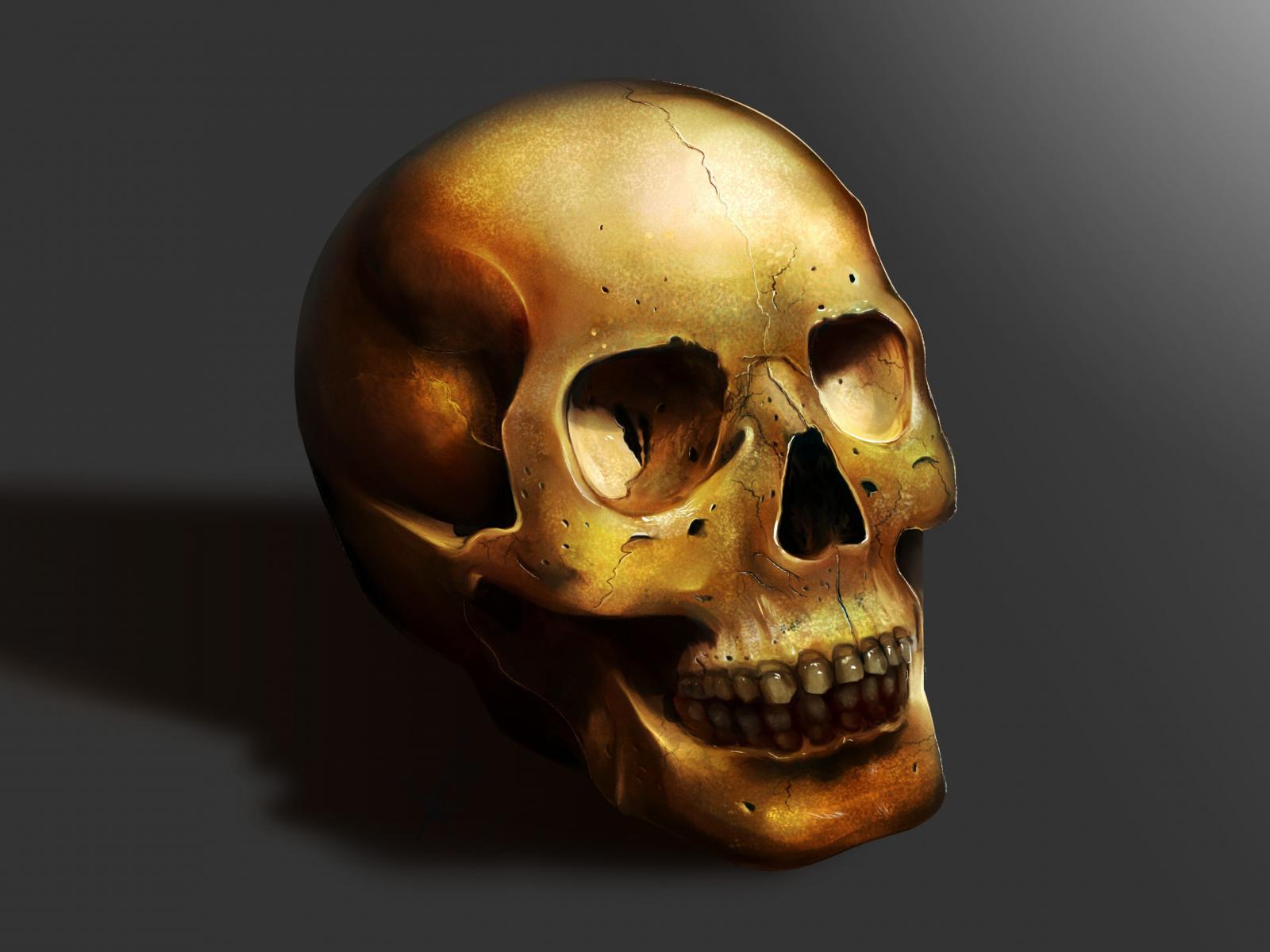 » Обои Золотой череп на сером фоне