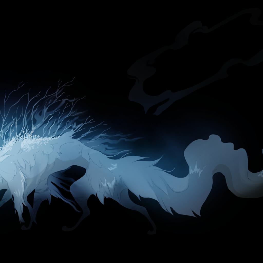 Обои Фантастическое животное из тьмы на черном фоне