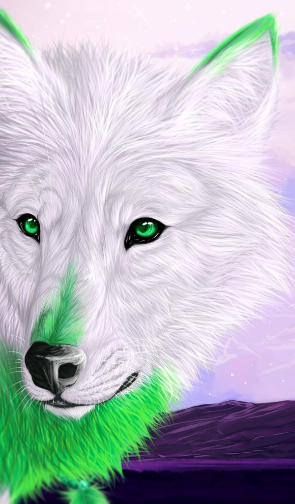 Обои Большой фантастический волк с зелеными глазами