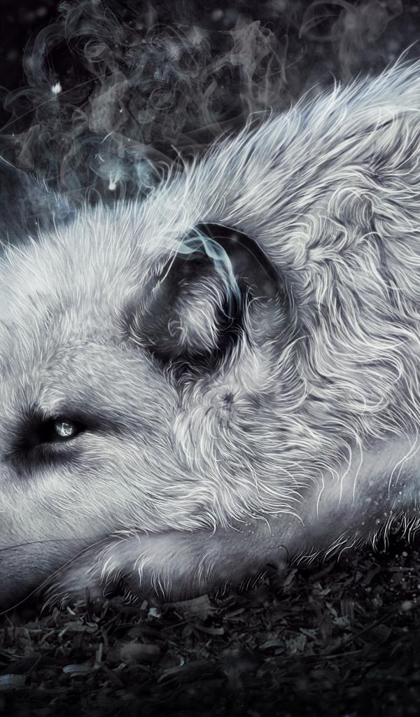 Обои Фантастический волк лежит на земле