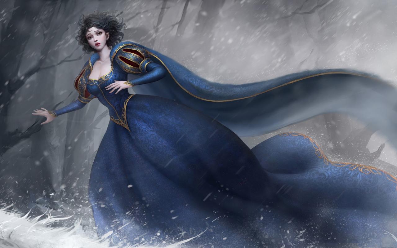 Обои Фантастическая принцесса в красивом платье в темном лесу