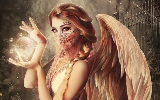 Обои Девушка ангел со сферой в руках, фэнтези