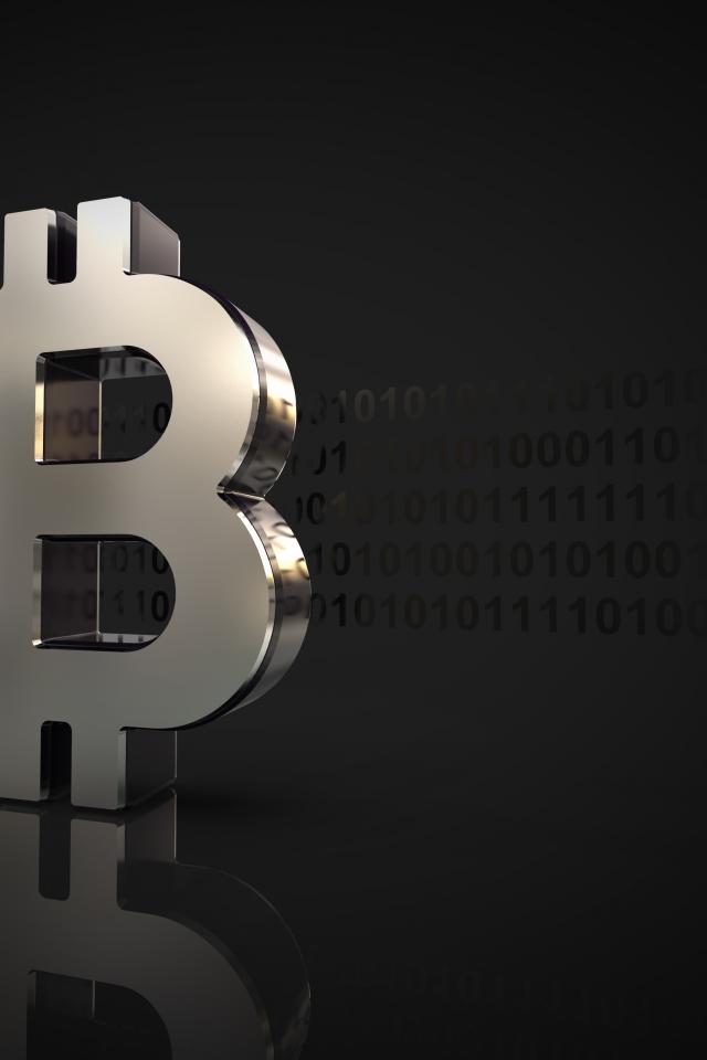 Обои Серебряный знак биткоин на сером фоне