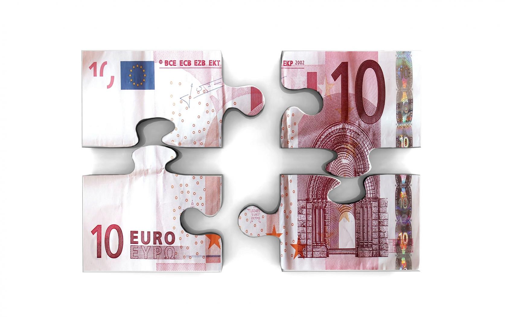Обои Пазл из купюры евро на белом фоне
